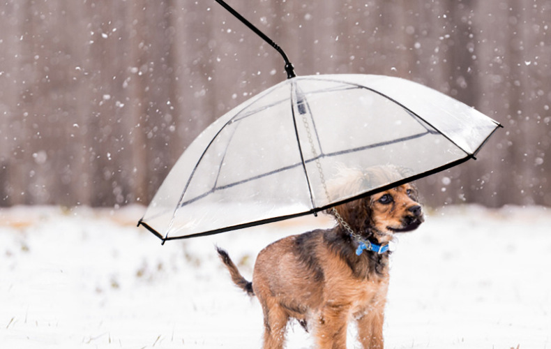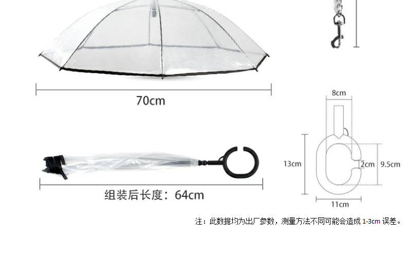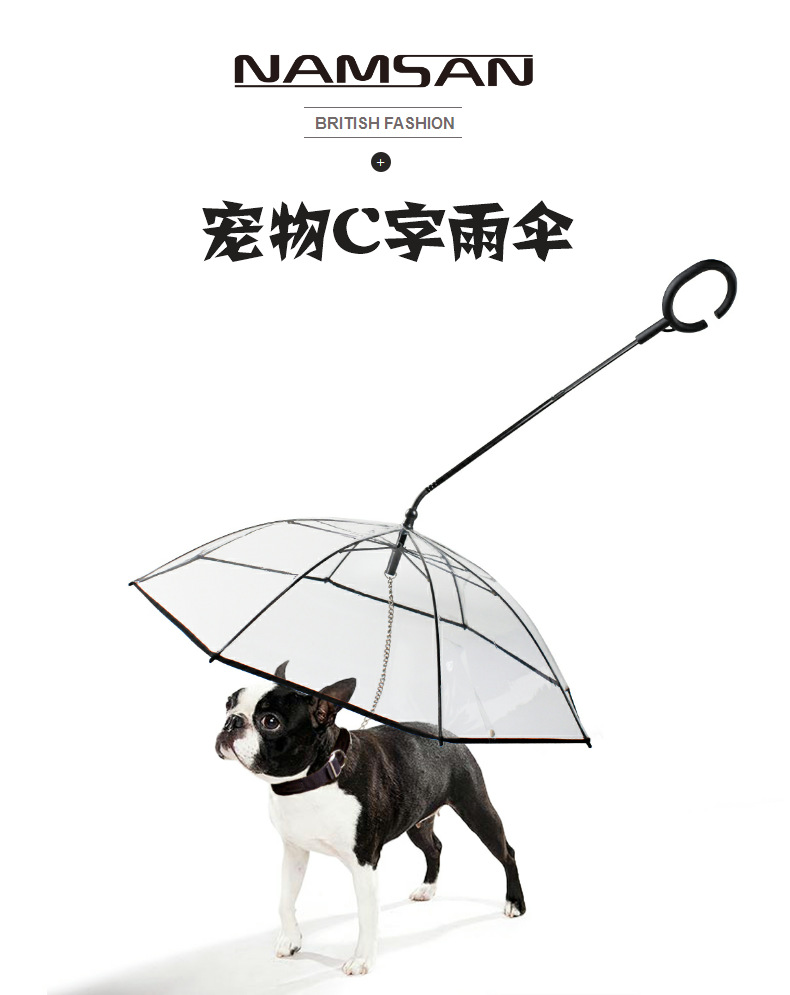 透明寵物雨傘狗狗C型雨傘寵用品廠家直銷可調節雨天遛狗牽引繩