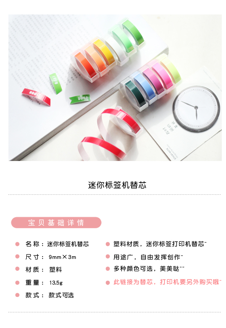 標籤機不乾膠膠帶替芯打字機彩色色帶手賬DIY裝飾膠帶